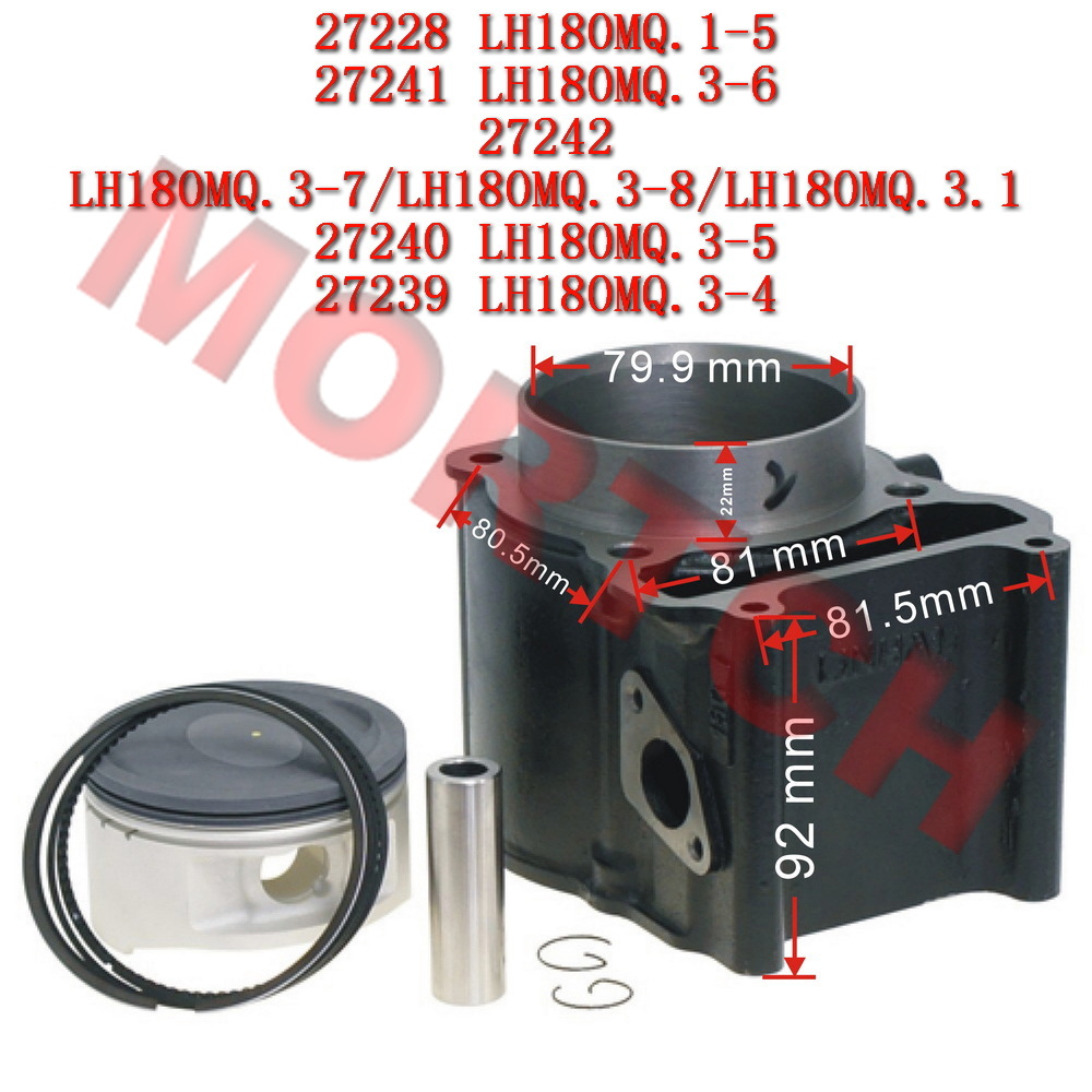This is Piston Assy for the liquid cooled Yamaha LH180MQ Linhai 400cc engine. 27241 LH180MQ.3-6 Piston 1 PCs 27242 LH180MQ.3..