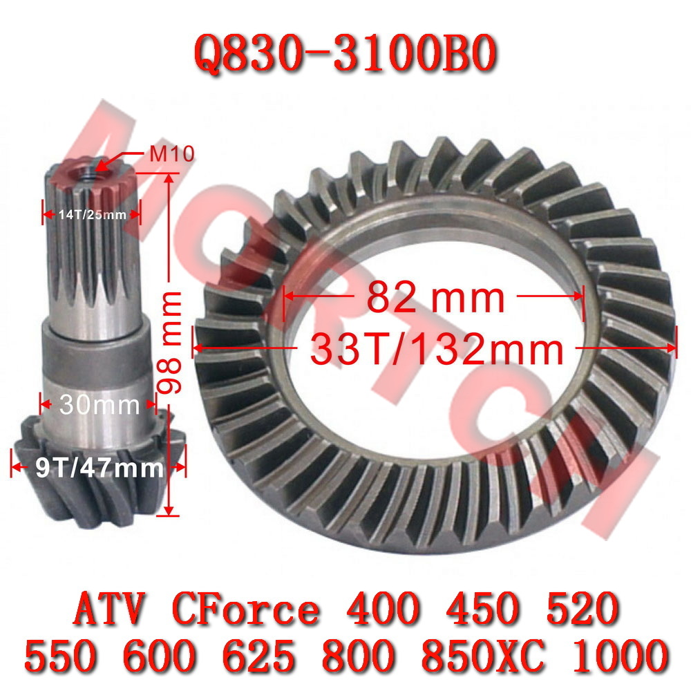 📌 Important Note: This part is the front gear case bevel gear assembly, including drive pinion (9T, 14T/25mm spline, 98mm length) and ring gear (33T/132mm OD, 82mm ID, 37mm bolt hole spacing). Compatibility list is based on OEM part number Q830-3100B0 data. If your model is not listed, please verify your original part number or consult your dealer.
