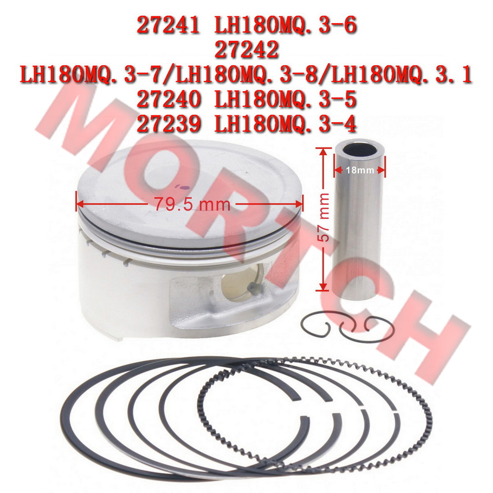 ✅ OEM specification replacement: This piston assembly includes piston (27241/LH180MQ.3-6), piston ring set (27242), wrist pin (27240/LH180MQ.3-5) and circlips (27239/LH180MQ.3-4) for Yamaha Linhai LH180MQ 400cc liquid cooled engine. Piston diameter 80mm, piston pin 18×57mm.