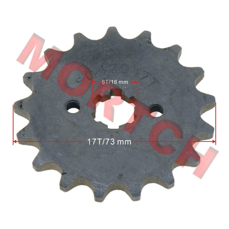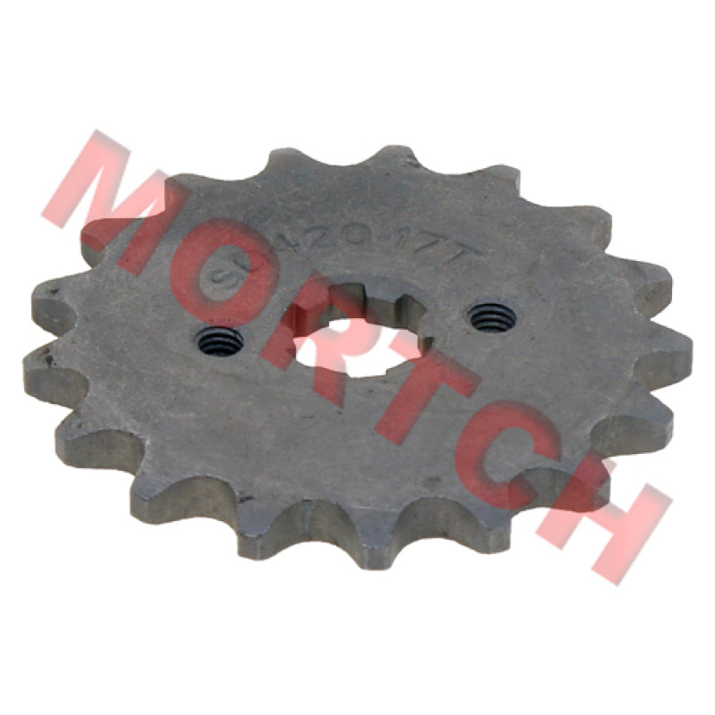 C100 428 17 Teeth Steel Front Sprocket for Moped, Cub, Dirty Bike and ATV, fits the engines of 139FMB, 147FMD, 147FMF, 150FMG, etc.