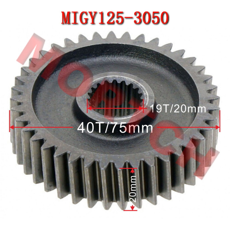 A replacement Gear of Fuel Reduce for GY6 4 stroke engine. Inner: 19T Outer: 40T Diameter: 75mm..