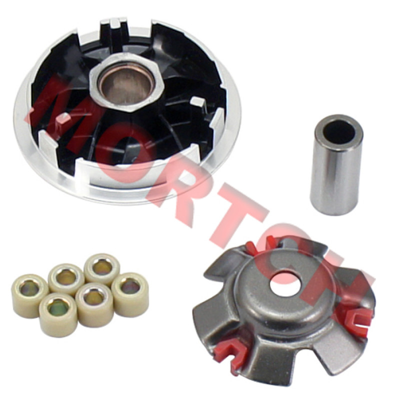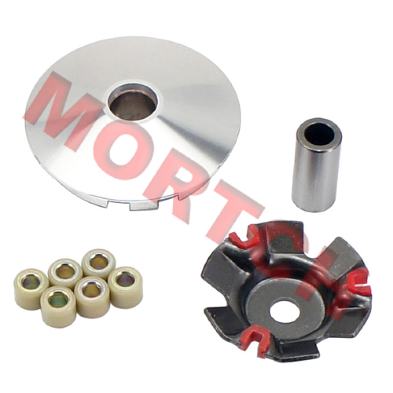 This is a High Quality High Performance variator for the GY6 125cc and 150cc. This Variator kit also includes a set of Performance Roller/Sliders to make it a complete set. Sliders equalize the load pressure to reduce sticking and broaden the range of variations. You should also consider a new Gates Performance belt to complete the job properly.