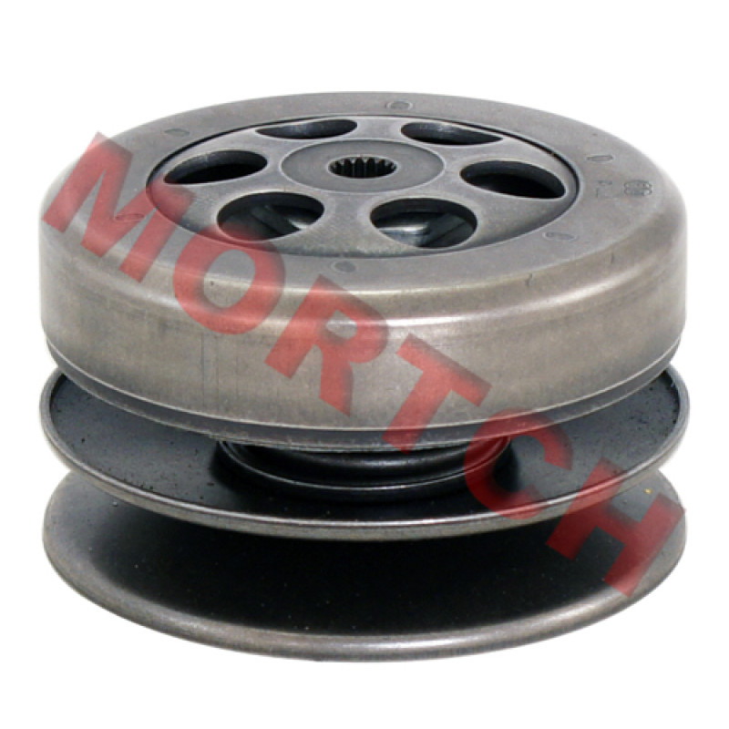 An excellent replacement for the scooter's original rear pulleys. The rear pulley kit comes with fixed and movable halves, clutch and its respective clutch bell (standard quality).