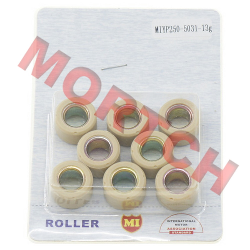 8 ready-to-fit roller weights for Yamaha YP250 LH170MN Linhai VOG 250-300cc engine. Special plastic coating for long life. Please check the weight you need.