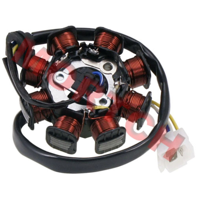 8 coil stator magneto commonly used on 4 stroke 125cc and 150cc scooter engines. Also sometimes referred to as a stator comp.