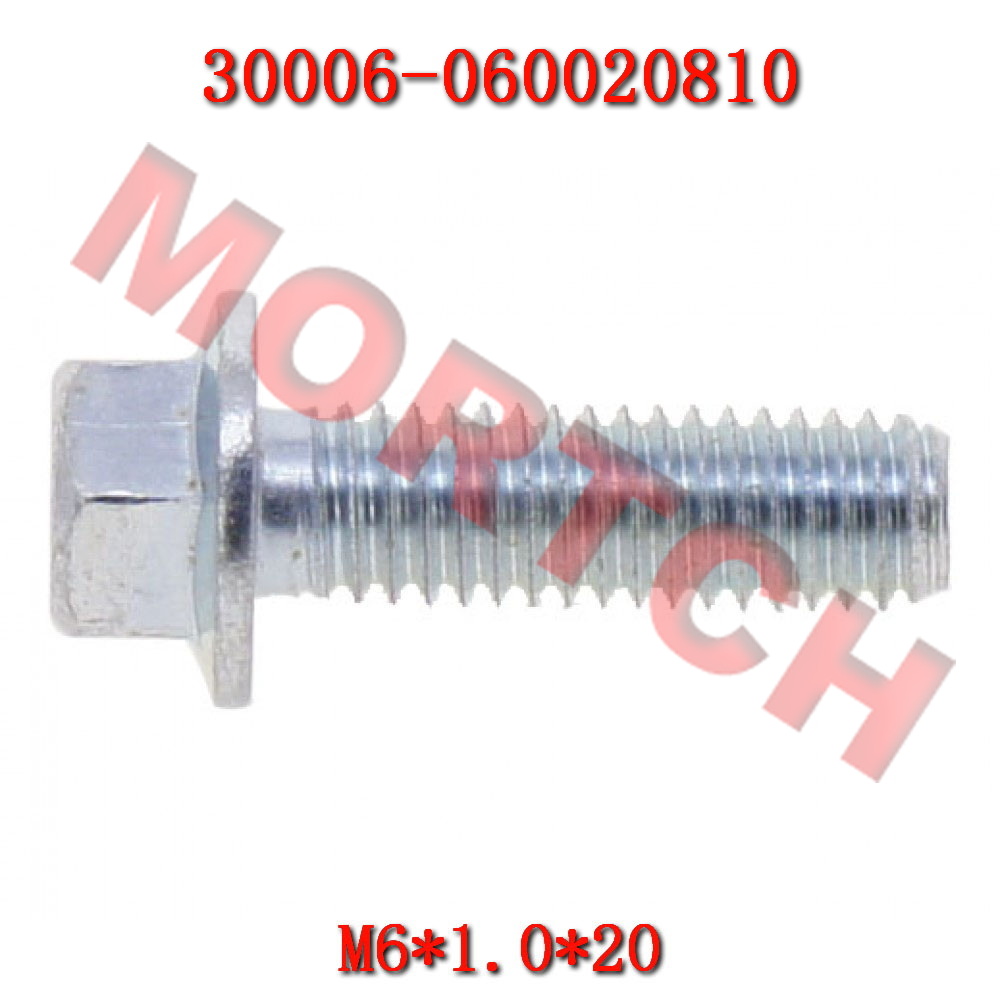 This product is an OEM-quality hex head bolt for CF Moto vehicles, part number 30006-060020810. Specification is M6×20mm, meaning thread diameter 6mm and shaft length 20mm. This is one of the most commonly used standard fasteners on vehicles, used to secure various body panels, brackets, interior trim, and mechanical components.