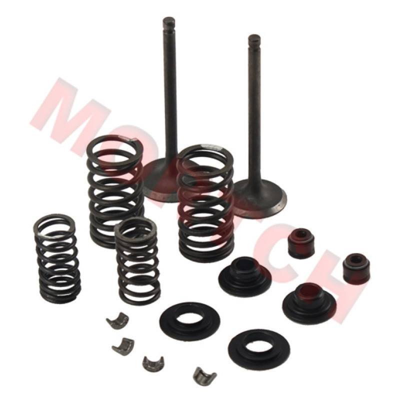 This kit includes the caps, tappet adjusters, retainers, inner and outer springs, valves and valve seals. This engine is on the CF Moto Fashion, CF Moto V3, CF Moto V5, JMstar , Jonway , Jonway Master 250, Lance Duke 250, NST, Power Buggy 250, QLink Sapero 250cc, Roketa Bali 250, SUNL SL250-2, Tank Touring 250, Tank Touring 250DE, Znen Roar 250 and many others...
