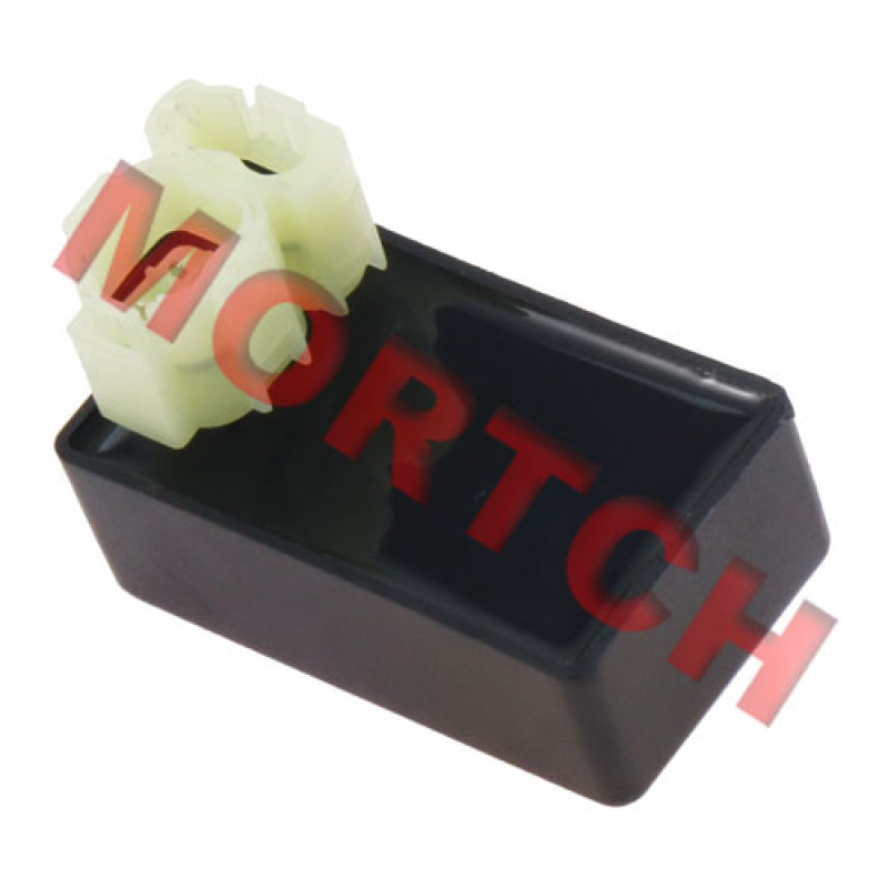 This CDI module is commonly used on today's popular medium to large engine sizes of 50cc, 90cc, 125cc, and 150cc and has a 6 pin rounded connector as pictured.