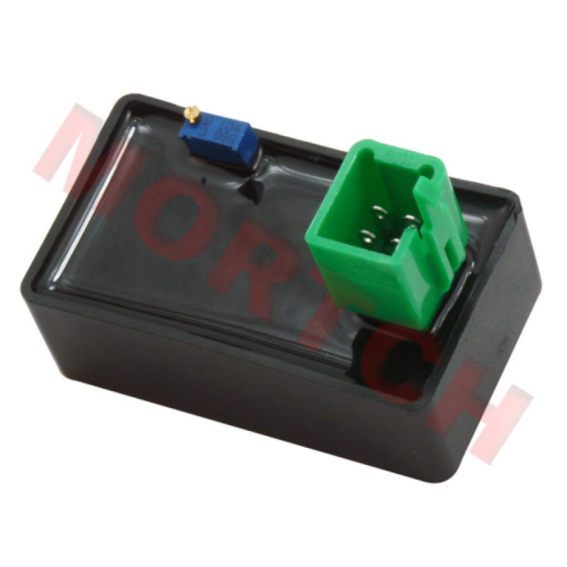 Adjustable high-performance CDI in standard quality for GY6 DC engine. This CDI has a 5 pin square c..